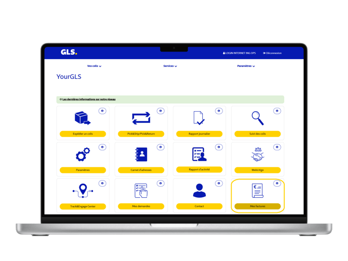 Une fois connecté, accédez à la rubrique « Mes factures », ou connectez-vous directement via la page dédiée : https://gls.primobox.net/Login.action