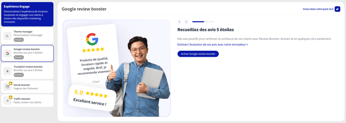 Pour offrir une expérience client optimale, il n'est pas possible d'activer à la fois Trustpilot et Google Reviews Booster.