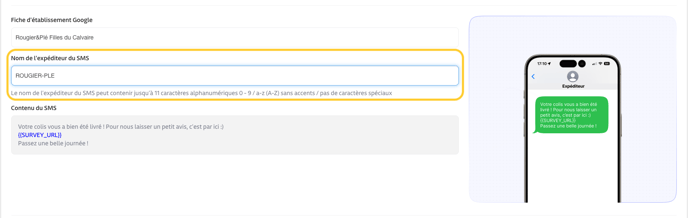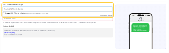 Le système affichera votre note Google actuelle et son évolution après l'envoi du SMS Google Reviews Booster.
