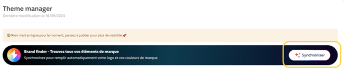 Grâce à la fonctionnalité Intelligent Brand Finder, vous pouvez rapidement récupérer vos couleurs et votre logo en seulement quelques clics.