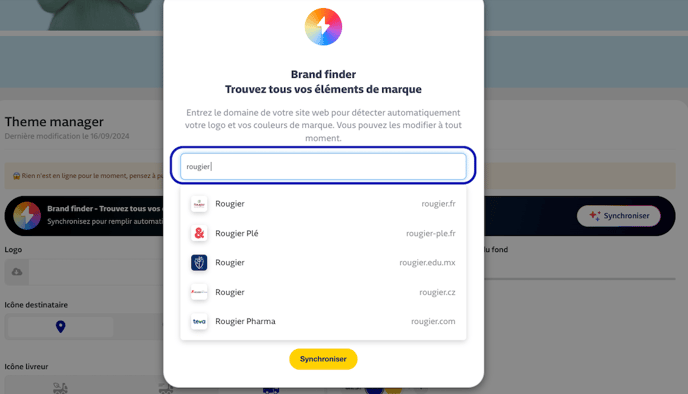 Sélectionnez ensuite l'URL de votre marque, ensuite cliquez sur Synchoriser