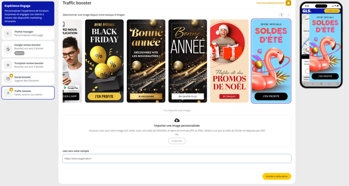 Une fois que vous avez paramétré votre Traffic Booster, vous avez plusieurs options :