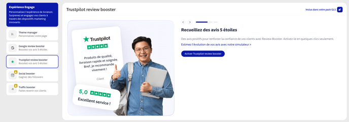 Pour offrir une expérience client optimale, il n'est pas possible d'activer à la fois Trustpilot et Google Reviews Booster.