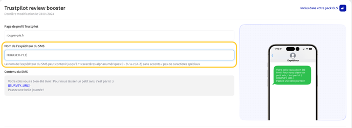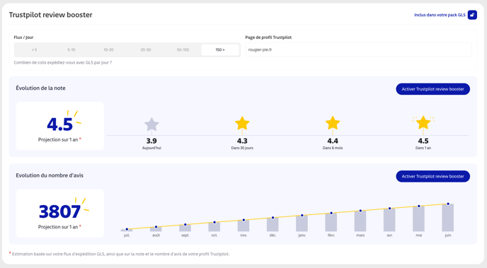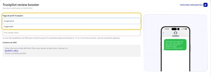 Notre système affichera votre note Trustpilot actuelle et son évolution après l'envoi du SMS Trustpilot Reviews Booster.